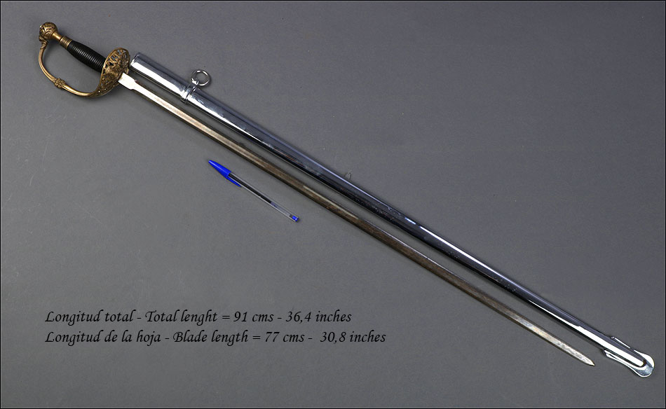 Medidas: Longitud Total: 91 cm. Longitud de la Hoja: 77 cm.