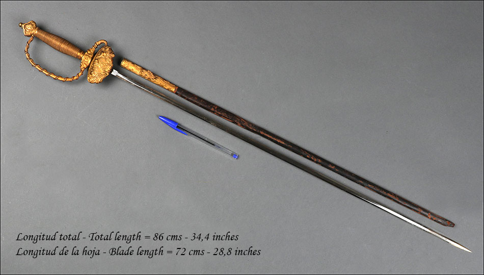 Rara Espada de Ceñir Española de Gentilhombre de Cámara del rey Alfonso XIII. España, Circa 1900 |