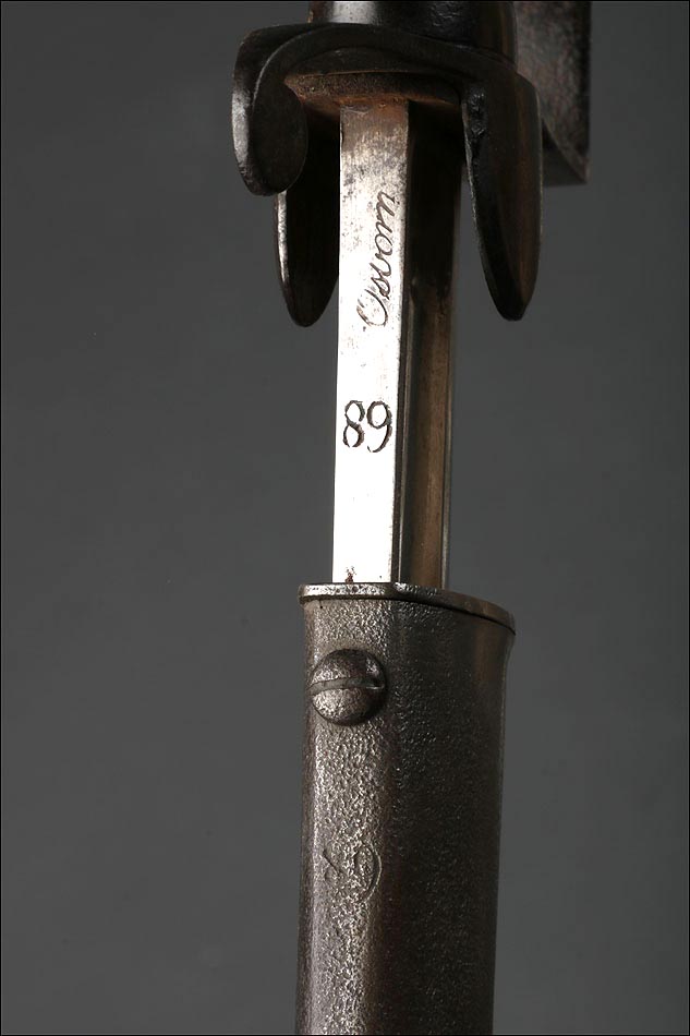Antigua espada-sable británica para oficial de caballería ligera modelo 1796 por Orsborn. Esta fascinante arma, forjada en la época napoleónica, procede de Inglaterra y está fechada circa 1800. Se trata de una pieza con más de doscientos años de antigüedad, que sin embargo se encuentra en excelente estado de conservación. En la parte superior del lomo de la hoja podemos ver el nombre Osborn claramente grabado en el metal. Corresponde a Henry Osborn, famoso espadero inglés que comenzó su trayectoria alrededor de 1785 y creó la sociedad Osborn & Gunby en 1805, junto con John Gunby. Junto a la firma de Osborn podemos ver también el número 89, que se repite en la vaina de metal. La empuñadura de la espada es extremadamente sencilla, con puño de madera ebonizada, cruz y guardamano de acero totalmente lisos. El guardamano tiene una bonita forma ondulada. La vaina es también de metal y conserva las dos anillas para el correaje.