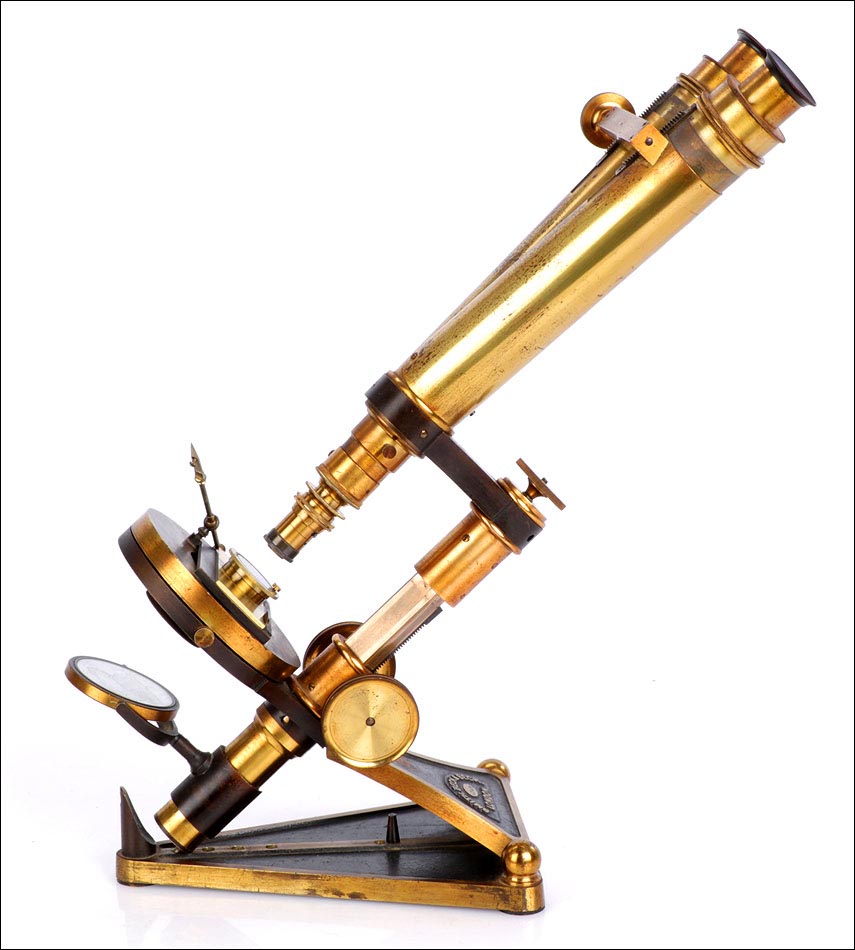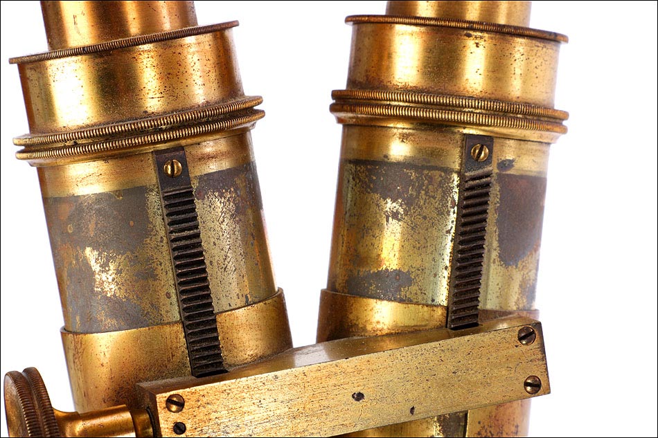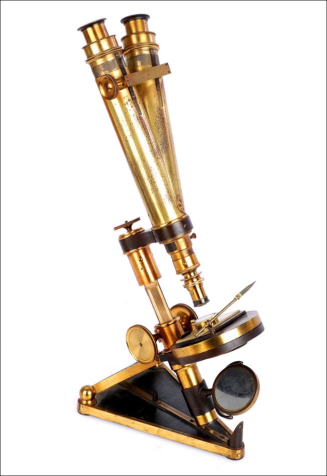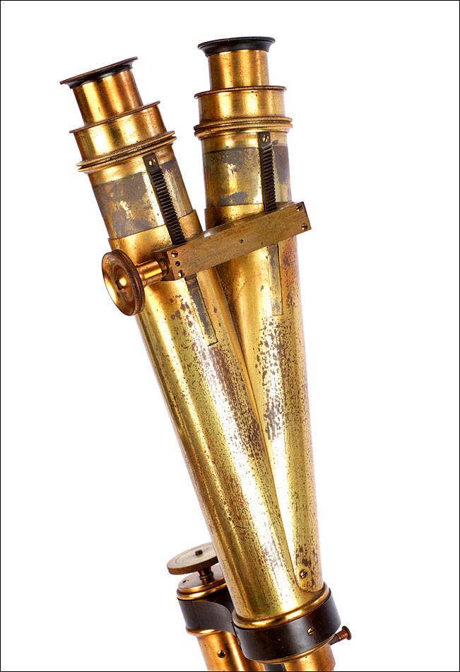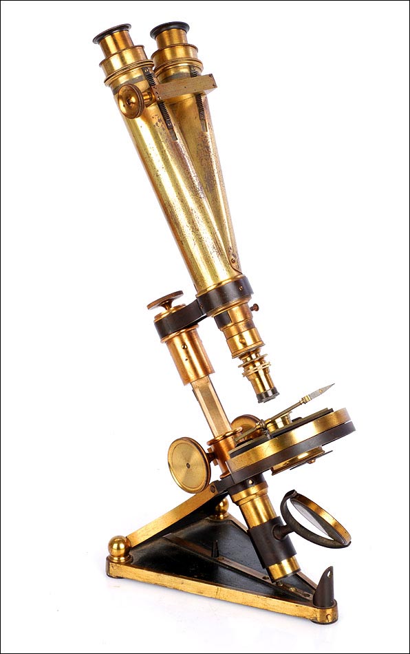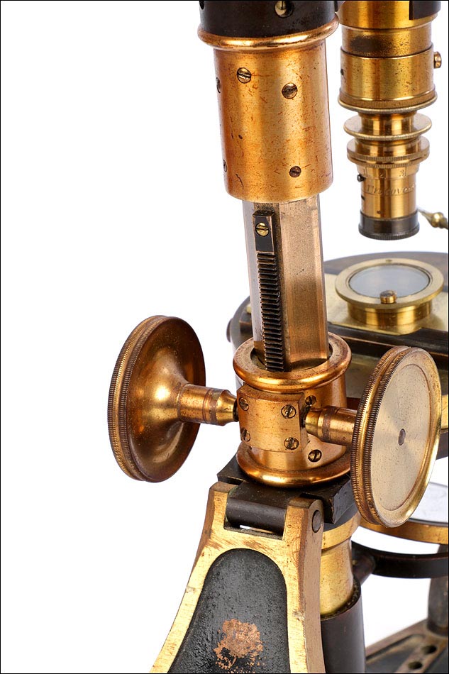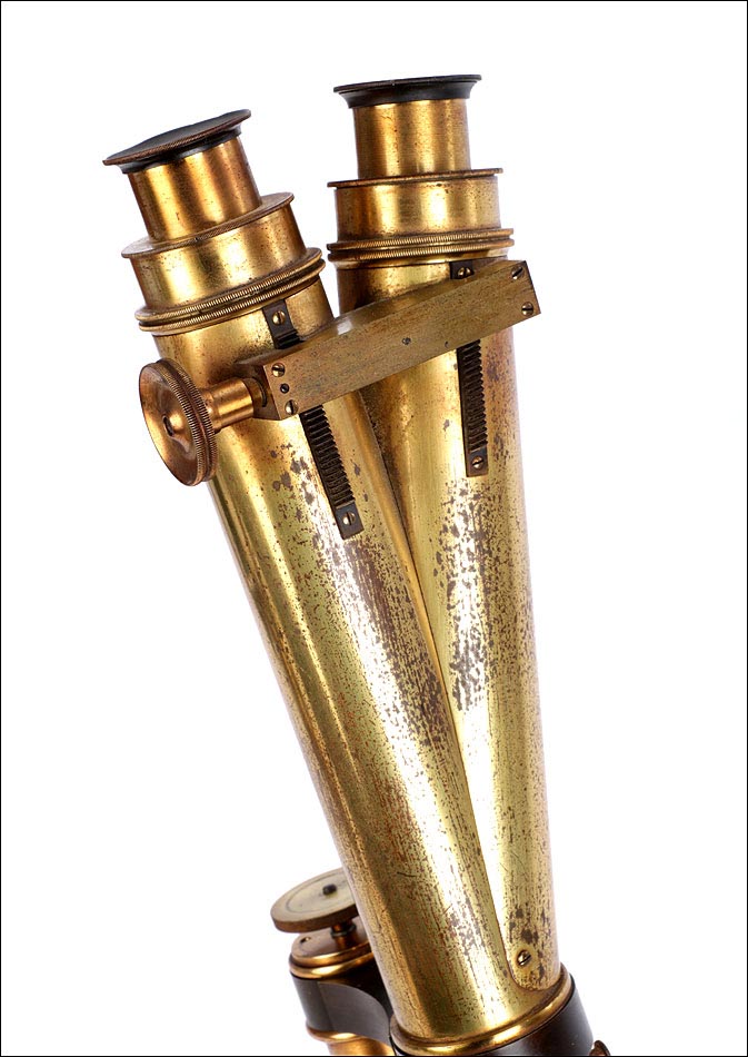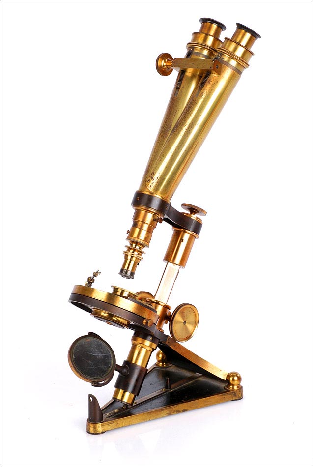 De hermoso diseño y con más de ciento veinte años a sus espaldas, este antiguo microscopio binocular Smith, Beck & Beck es una auténtica pieza de museo.