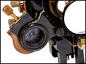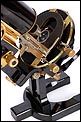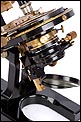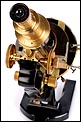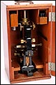 El microscopio lleva pie de herradura y conserva el esmaltado negro en muy buen estado, liso y brillante. El latón está protegido por un lacado transparente original de época que cumple una doble función: evitar su deterioro y aportar a la superficie dorada una pátina antigua y cálida. En la parte frontal del microscopio podemos ver el nombre y el logotipo del fabricante, CARL ZEISS JENA, acompañado del número de serie 82246. El estuche es una fantástica caja de madera de caoba maciza, con la puerta construidas con piezas de madera combinadas formando un bonito diseño en diamante. La caja conserva la cerradura y la llave originales en perfecto funcionamiento.