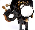 Impresionante microscopio antiguo Carl Zeiss tipo “Asa de Jarra”, fabricado en Alemania circa 1920-30 y en excelentes condiciones. El microscopio funciona muy bien: la lente nº 3 que incluye el set de accesorios no presenta un buen enfoque, por lo que se ha sustituido por un modelo similar de la marca Leitz en perfecto estado y con la máxima nitidez. Además, va acompañado de un juego completo de 5 oculares en magníficas condiciones. El microscopio muestra un curioso diseño, con cuerpo de hierro esmaltado en negro y asa posterior (que da nombre al tipo de aparato). El esmalte negro combina muy bien con el latón del que están fabricadas las otras piezas: la torre, los tornillos y las lentes.
