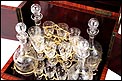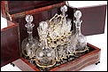 Antigua Licorera Francesa con Cristalería Tallada. Completa. Llave. Francia, Circa 1900 |