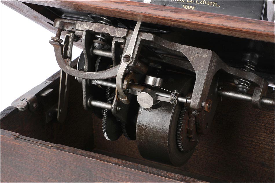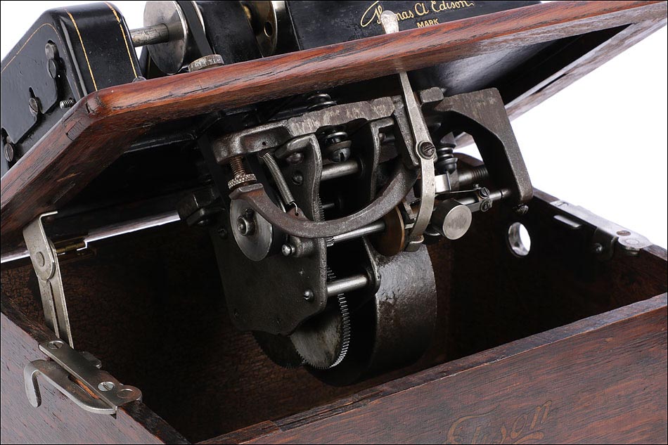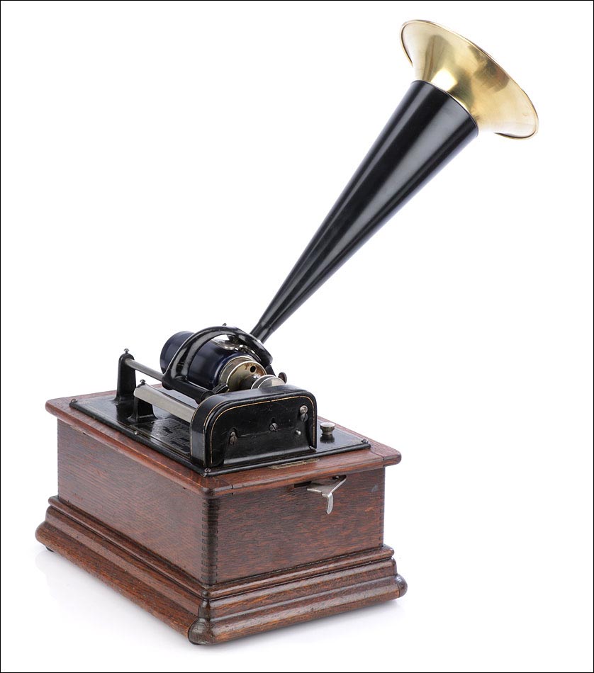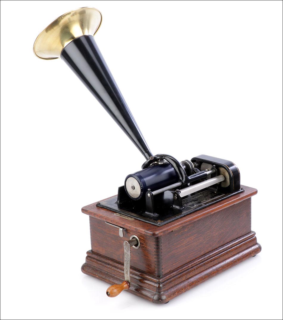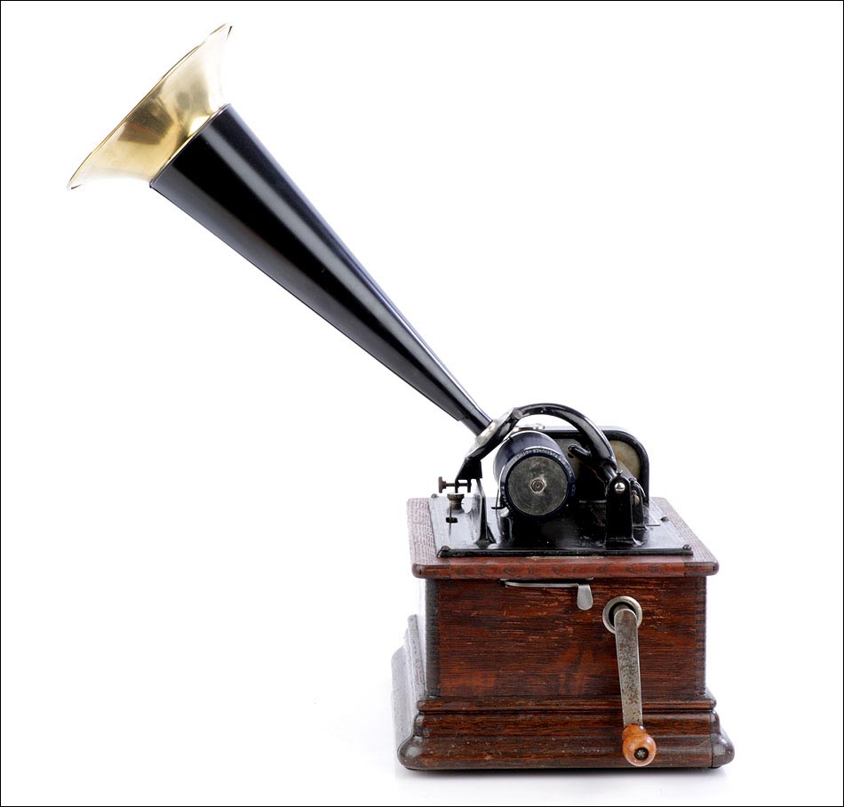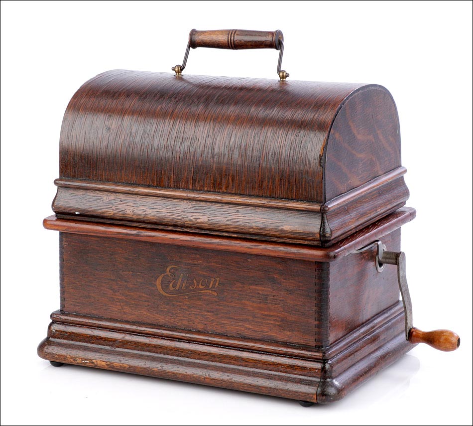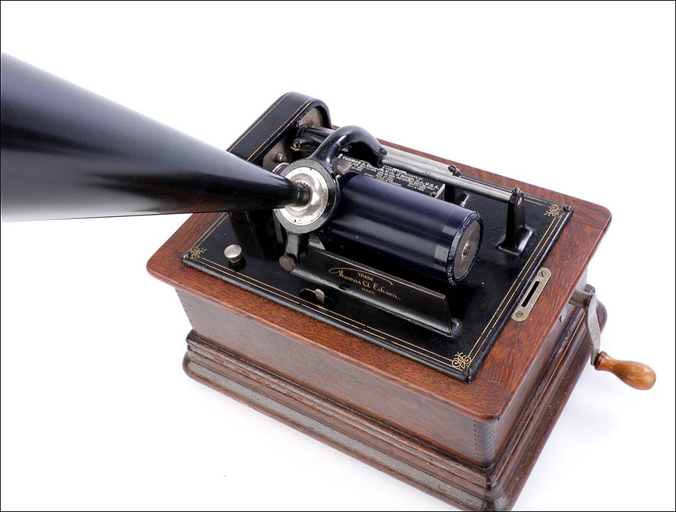 El primer fonógrafo fue creado por Thomas A. Edison a partir de dos aparatos ya existentes: el telégrafo y el teléfono. En 1877, Edison decidió crear una máquina pudiera grabar mensajes mediante perforaciones para luego reenviarlos de nuevo. Tras cambiar el papel por un cilindro de metal, realizó la famosa grabación de la rima infantil “Mary had a Little lamb” (“Mary tenía un corderito”), cuando reprodujo el cilindro, para su asombro la máquina repitió la rima. Edison patentó su invención el 24 de diciembre de 1877. La primera empresa fundada por Edison, The Edison Speaking Phonograph Company, se fundó al año siguiente para exhibir la máquina con fines comerciales. No fue hasta 1887 cuando se creó The Edison Phonograph Company, destinada ya a comercializar fonógrafos. En 1894 el inventor declaró en bancarrota la North American Phonograph Company para poder recuperar los derechos de su invento, y e 1896 fundó la National Phonograph Company con el objetivo de comercializar fonógrafos de uso doméstico. El éxito propició la apertura de filiales de la marca en distintos puntos de Europa. Ya en 1910 la firma se reorganizó bajo el nombre de Thomas A. Edison Inc.; el inventor nunca quiso dejar de fabricar cilindros y pasarse al pujante mercado de los discos para gramófono, lo que supuso el debacle de la empresa, que desapareció en 1929.