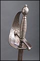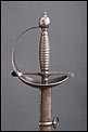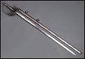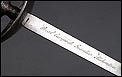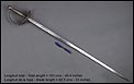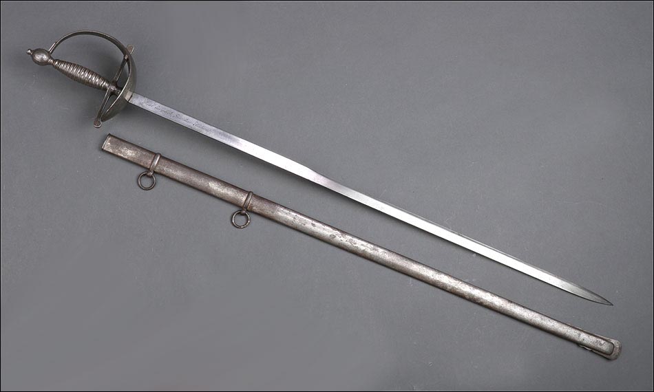 Este modelo de espada es el modelo 1848 (aunque todas están fechadas 1849), forjada en la época en la que el teniente general Francisco Martínez Campos propuso a la reina Isabel II de España cambiar el diseño de los sables de los Guardias Alabarderos de la reina, al considerarlos poco distinguidos a la hora de lucirlos con el uniforme de gala. De esta manera, en julio del mismo año se aprobó la fabricación de 325 unidades que al final terminaron siendo solo 320. Tras la caída del trono de la reina y su exilio a Francia, el Real Cuerpo de Alabarderos entregó 109 espadas en la armería real y otras 53 en la frontera entre ambos países. En total 164. Las otras 156 espadas se perdieron, cuando los Voluntarios de la Libertad saquearon el cuartel de palacio. Esta espada es una de las piezas desaparecidas.