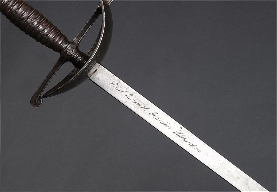 Esta antigua y rara espada para Guardia del Real Cuerpo de Guardias Alabarderos destacará en cualquier colección por su curiosa historia y su autenticidad.