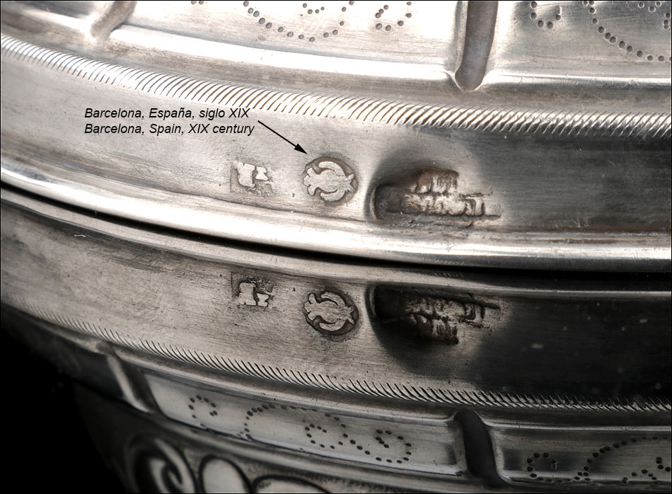 Antiguo Cáliz Español en Plata Maciza. Con Estuche. Barcelona, España, Siglo XIX |