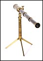 Antiguo telescopio de sobremesa con estuche, fabricado a finales del siglo XIX y en muy buen estado de funcionamiento. Este bellísimo instrumento tiene más de un siglo de antigüedad y ha llegado a nosotros en excelente estado. Se puede desmontar y guardar en su estuche original de madera de caoba maciza, también en buenas condiciones. El catalejo está fabricado íntegramente en latón, e incluye un trípode estable y sólido. En este artículo llama la atención su excelente funcionamiento: el catalejo permite una visión nítida y de gran aumento, que permite emplearlo para contemplar parajes y objetos situados a distancia. De esta manera, constituye un objeto muy decorativo, funcional y original de época cien por cien. El estuche conserva los ganchos de cierre de latón originales; la madera muestra algunos signos del paso del tiempo y el uso que le aportan una encantadora pátina de antigüedad.