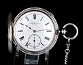 Reloj de Caballero. Cuerda y puesta en hora con llave (incluída). Reloj tipo Semi Cazador. Con la inscripción: "Por Orden de su majestad la Reina Victoria". Maquinaria con patente 4658 (ver descripción), número de serie 37865, fabricado y distribuido por William Benson, 62-64 Ludgate Hill, Londres.