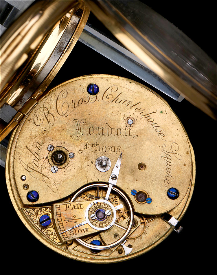 John Berryhill Cross de Londres: Este fabricante de relojes y cronómetros trabajó entre 1822 y 1864. Entre 1822 y 1832 trabajó en Jewin Street. De 1832 a 1845 fue registrado en el 41 de la Plaza de la Cartuja. Sobre el período de 1851 a 1858 trabajaba en el 23 de la calle Moorgate. Hacia 1861 hasta alrededor de 1864 estaba en el 53 de la calle Moorgate.