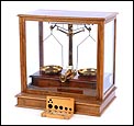 Por su belleza y su buen estado de conservación, esta antigua balanza de precisión en urna de cristal brillará en cualquier colección, estudio o salón.