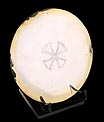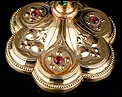 La combinación de materiales y la profusión de adornos de este antiguo cáliz y patena en plata y latón dorado lo convierten en un artículo muy especial, lleno de encanto y belleza.