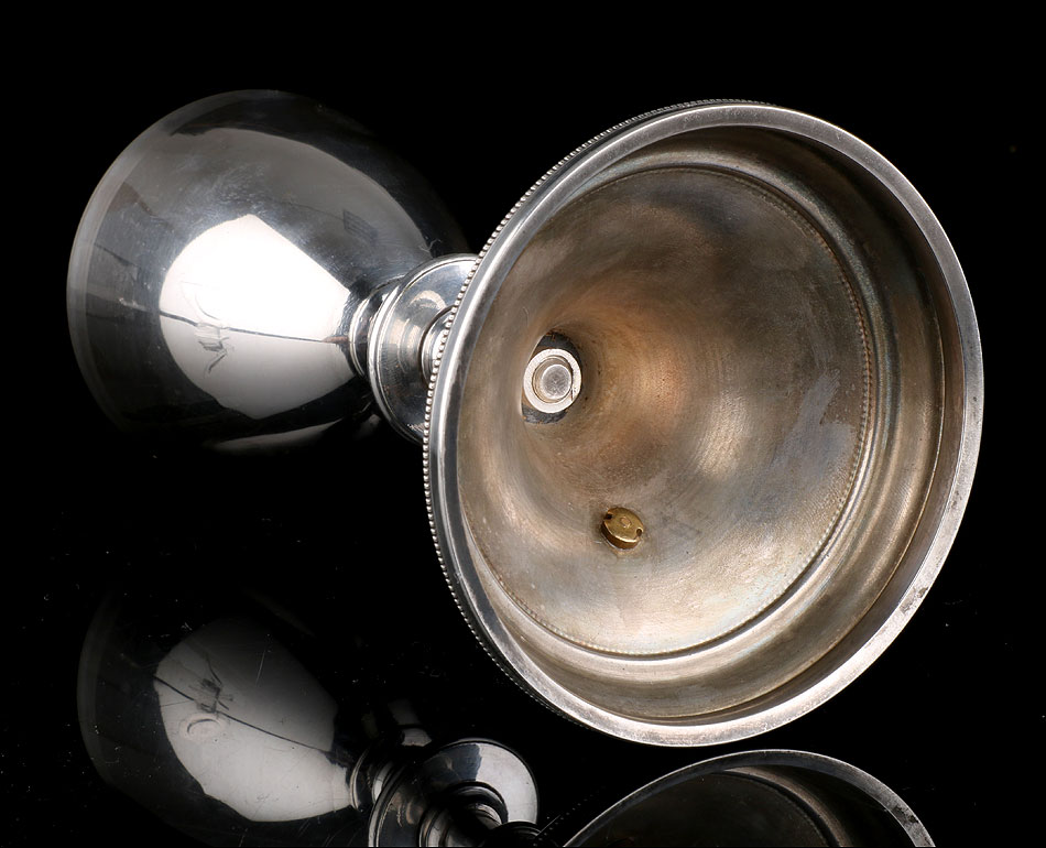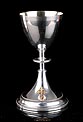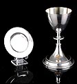 Perfecto para una colección de platería litúrgica o para oficiar misa, este antiguo cáliz y patena en plata maciza destacará por su elegancia y armonía formal.