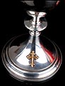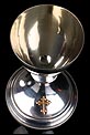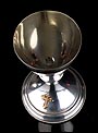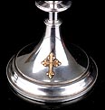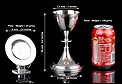 Medidas: Cáliz: Ancho de la Base: 9 cm. Altura: 16 cm. Ancho de la Copa: 7,5 m. Peso: 198 g. Patena: Diámetro: 9 cm. Peso: 25 g.
