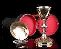 Antiguo Cáliz en Plata Maciza Dorada y Granates. Estuche. Francia, Circa 1880 |
