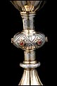 Medidas: Ancho de la Base: 13 cm. Altura: 23 cm. Ancho de la Copa: 9,5 cm. Peso: 340 g. Patena: Diámetro: 13 cm.