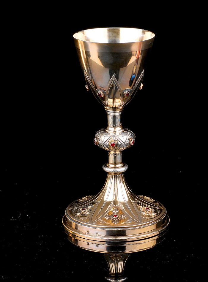 Los amantes de las antigüedades religiosas y las obras de platería sabrán apreciar la belleza y la autenticidad de este antiguo cáliz en plata maciza dorada adornado con granates.