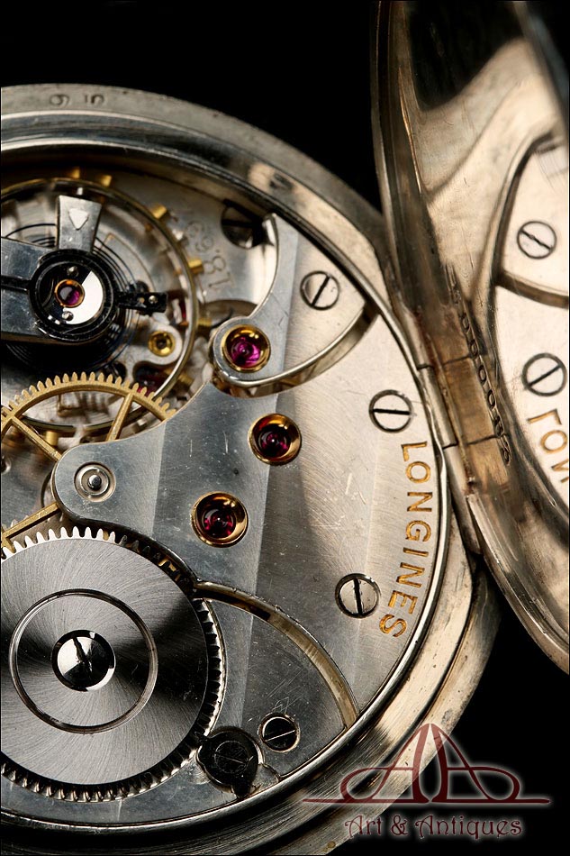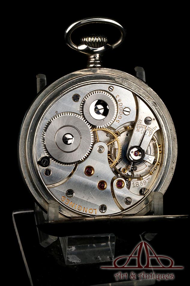 Antiguo Reloj de Bolsillo Longines en Metal Plateado. Circa 1930 |