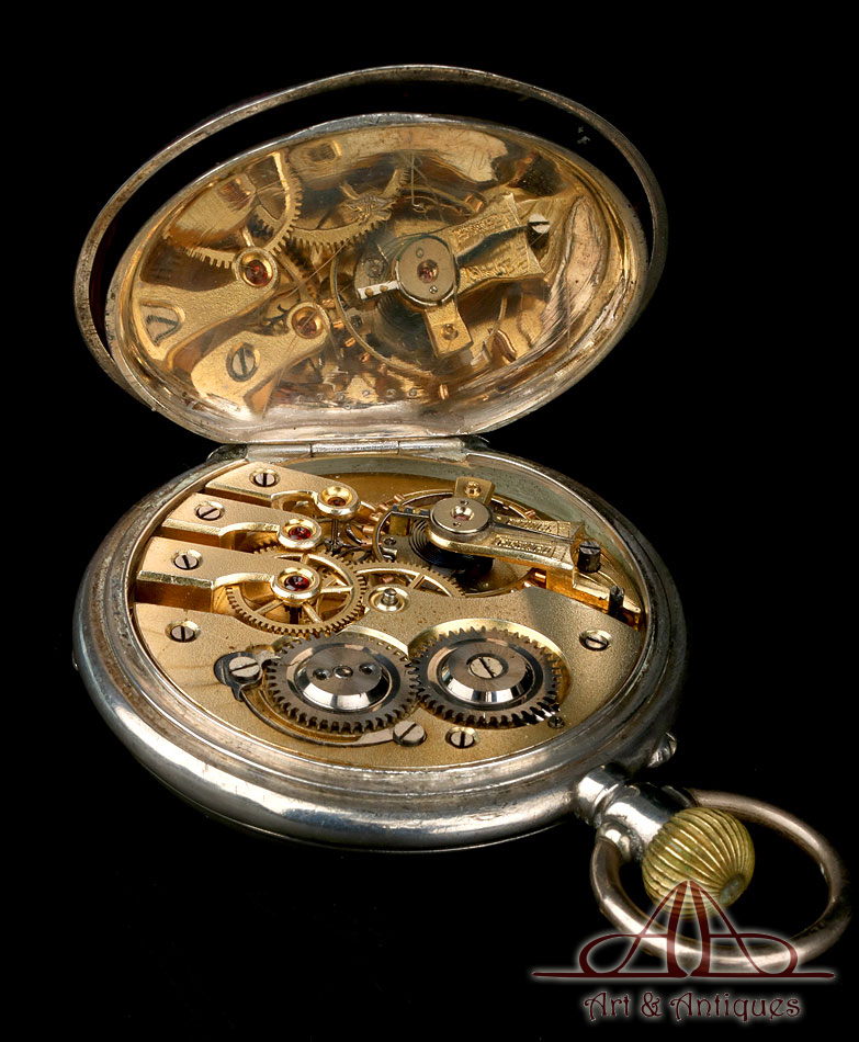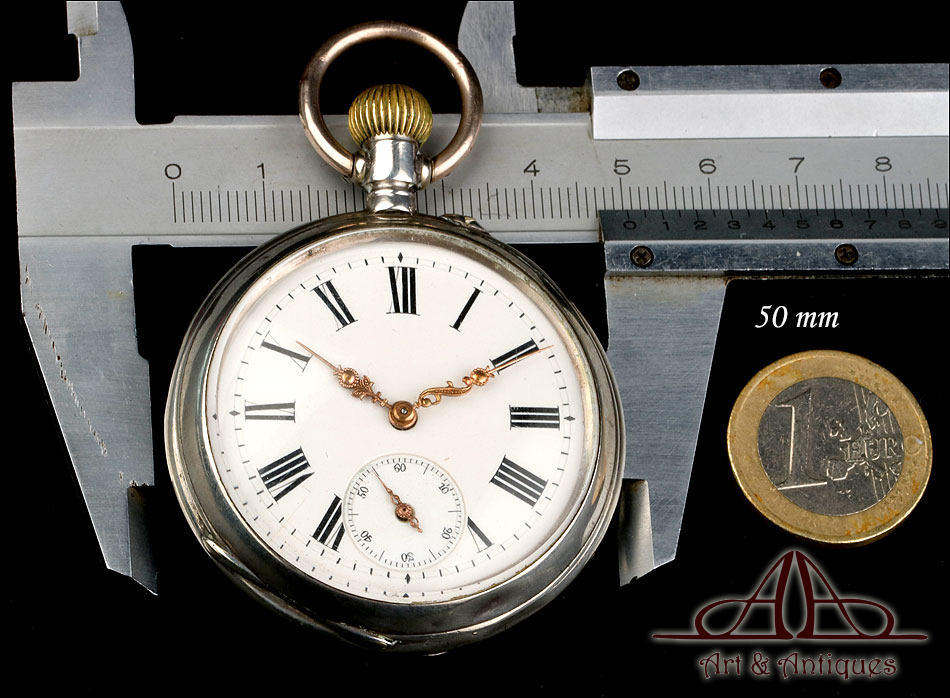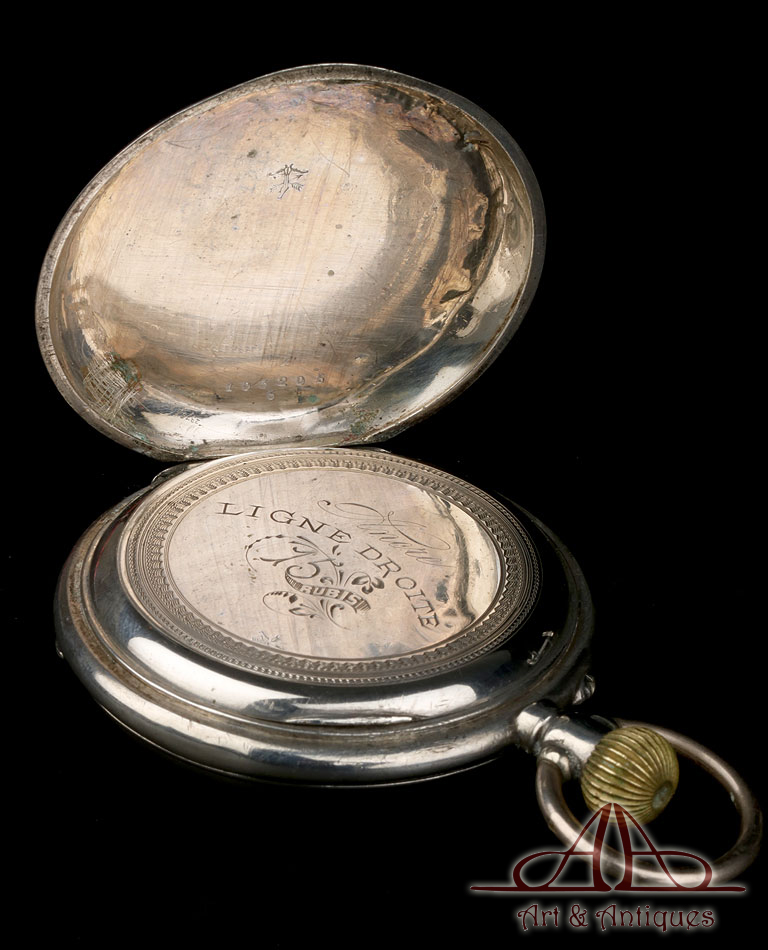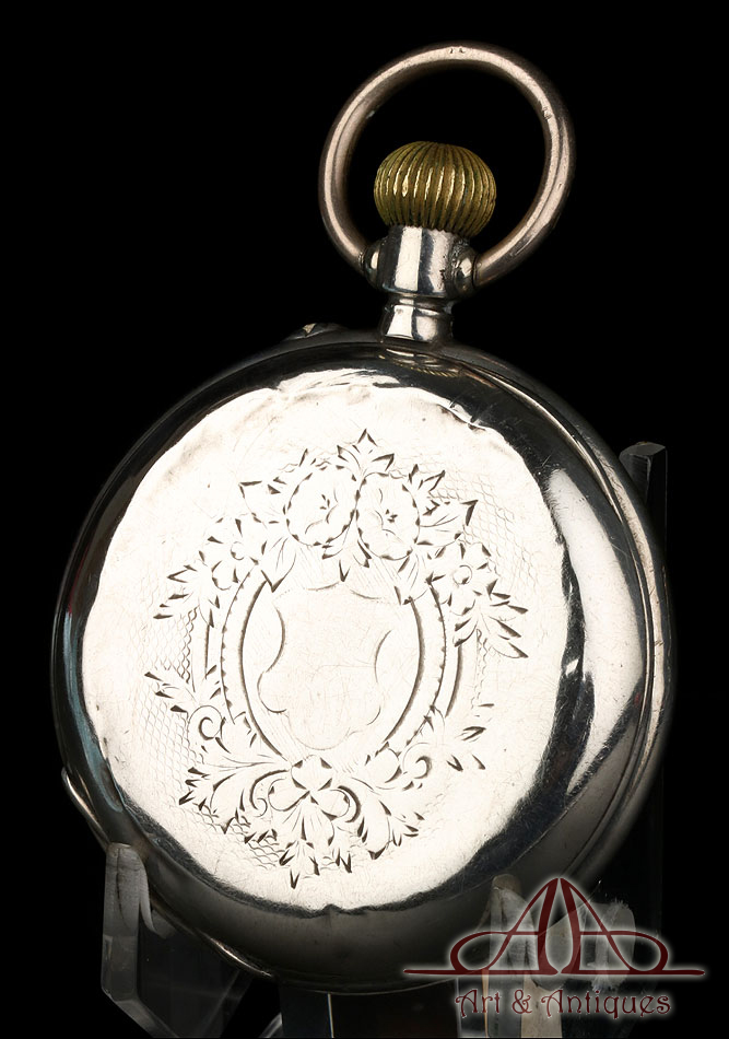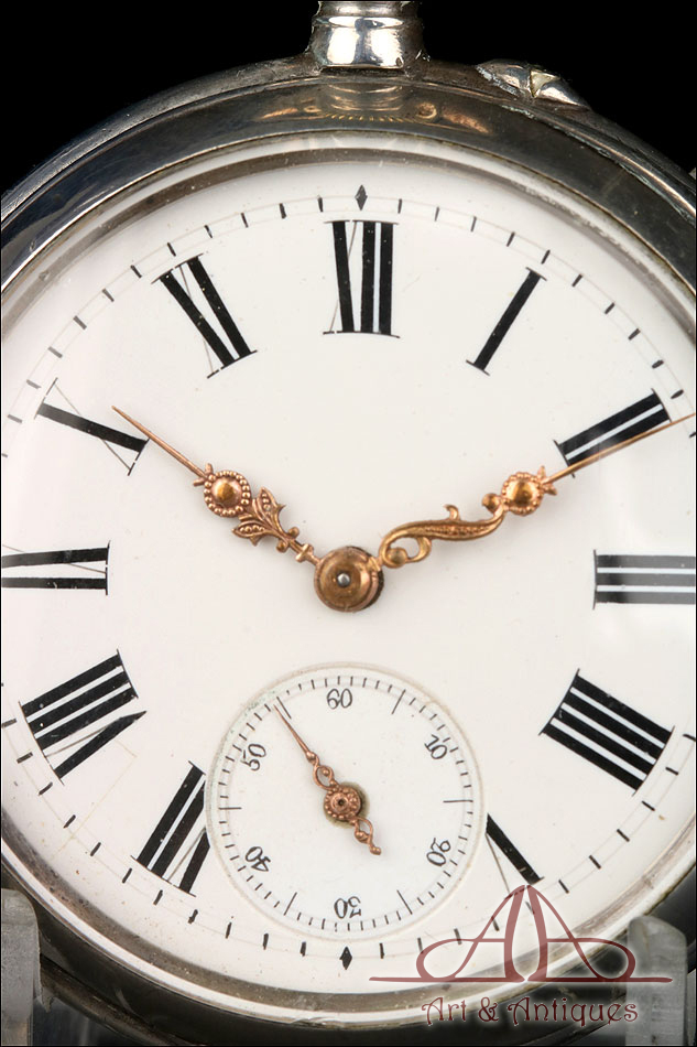 Antiguo Reloj de Bolsillo de Plata. Circa 1890. |