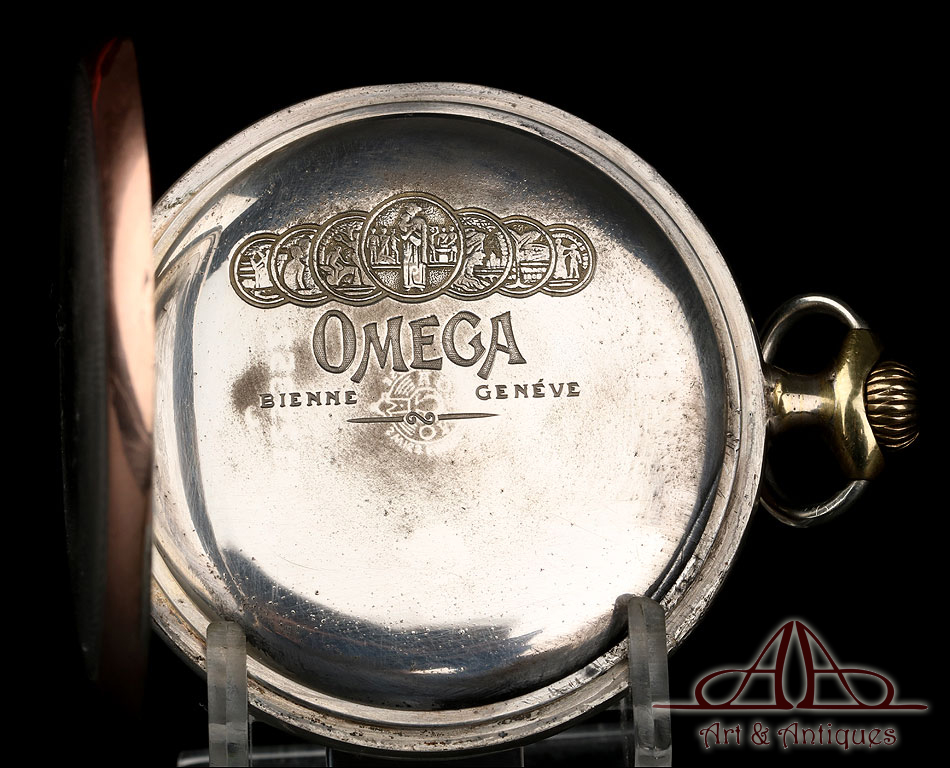 Este fantástico y antiguo reloj de bolsillo Omega de plata maciza muestra la gran calidad y el atractivo diseño característicos de una marca icónica, que forma parte de la historia de los relojes modernos.