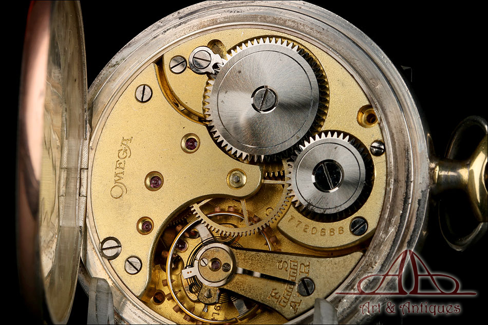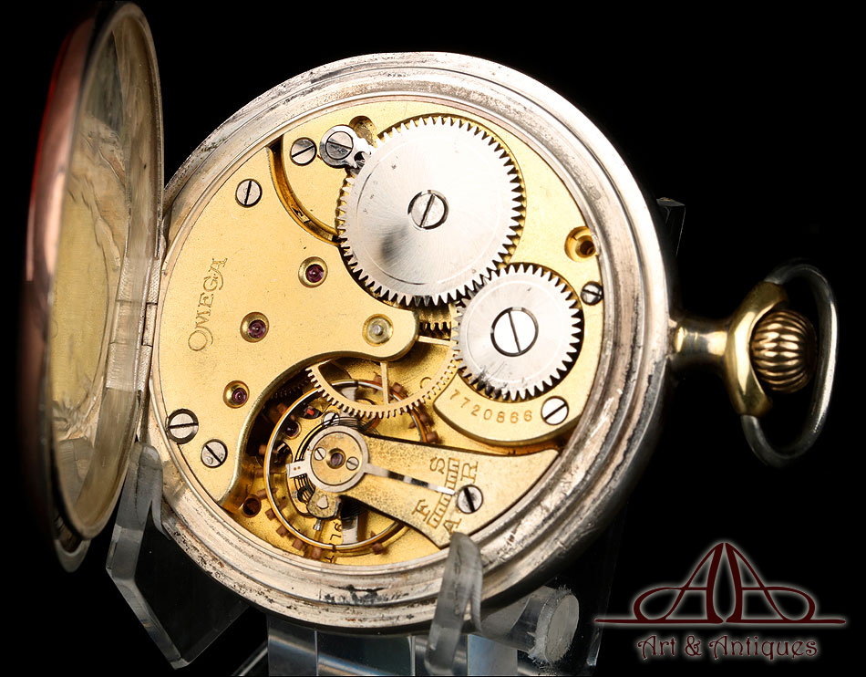 Antiguo Reloj de Bolsillo Omega, en Plata Maciza. Suiza, Circa 1920 |