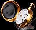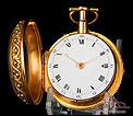 Espectacular reloj de bolsillo catalino George Grahan con sonería a cuartos y caja de oro 18K fabricada a medida. La maquinaria del reloj, firmada por George Graham en la tapa y en la propia maquinaria, es una auténtica maravilla original de principios del siglo XVIII. La caja es de oro 18K y fue fabricada a la medida a mediados del siglo XIX, aproximadamente. La caja es también una pieza de alta orfebrería, de gran belleza e impresionante elegancia. De esta época son también la esfera y las agujas; la calidad de estas piezas está sin duda a la altura de la maravillosa maquinaria, que incluye sonería que da los cuartos y las medias sobre una campanilla. Funciona de maravilla y despliega un sonido tan limpio como hermoso, un detalle que aumenta el interés de este soberbio reloj exclusivo para los mejores coleccionistas.