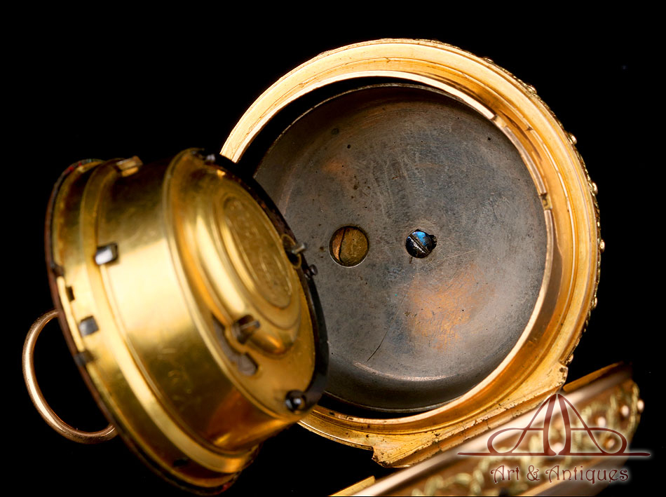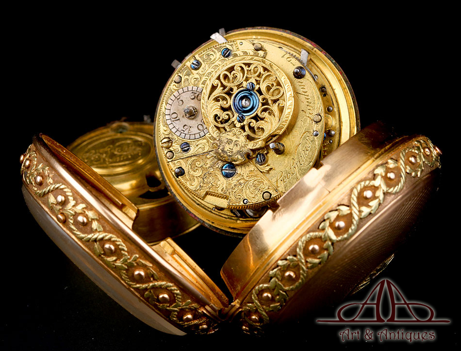 Espectacular Reloj de Bolsillo Catalino George Graham con Sonería a Cuartos. Oro 18K Rosa. Inglaterra, Circa 1720 |