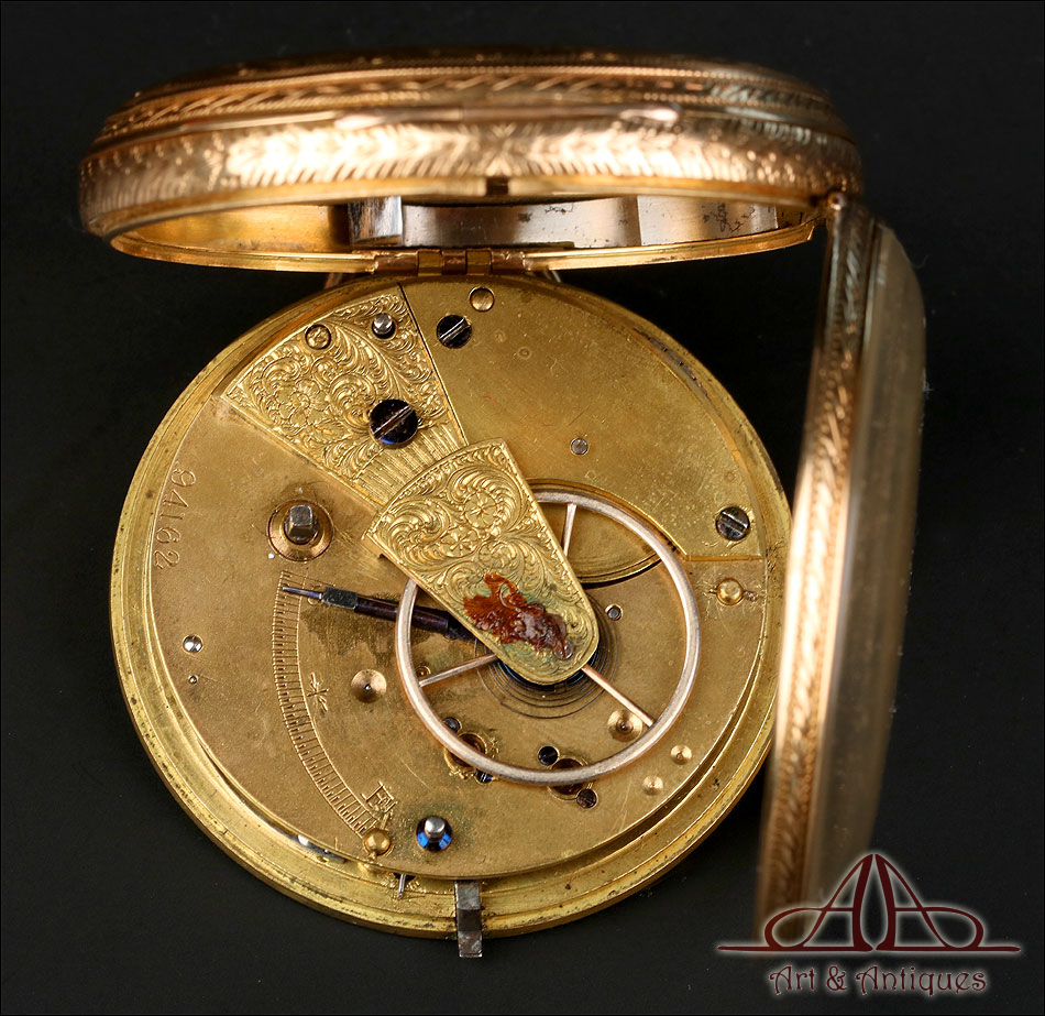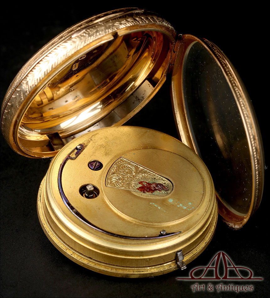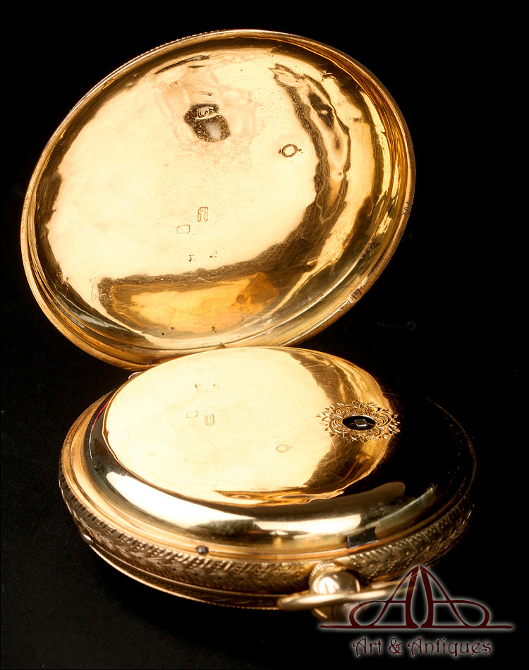 Precioso Reloj de Bolsillo Antiguo Semi-Catalino Inglés. Oro 18K. Inglaterra, 1874 |