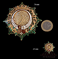Medidas: Ancho: Gran Cruz: 78 mm. Placa de Pecho: 51 mm. Insignia: 23 mm.