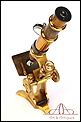 Rarísimo Microscopio Inglés Antiguo de Latón Pillischer. Inglaterra, Circa 1890 |