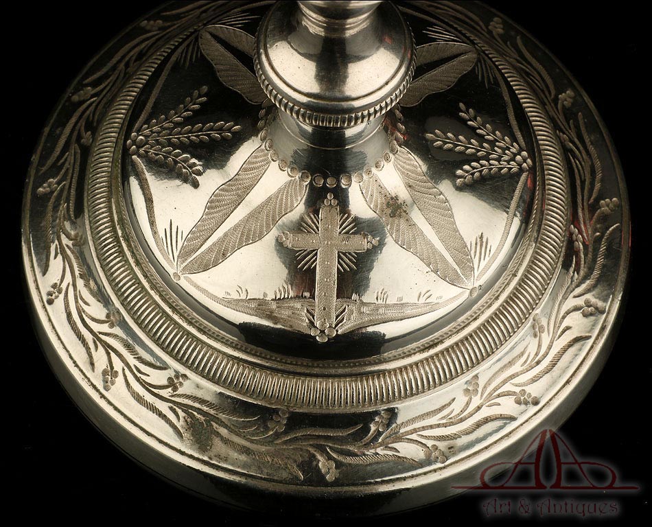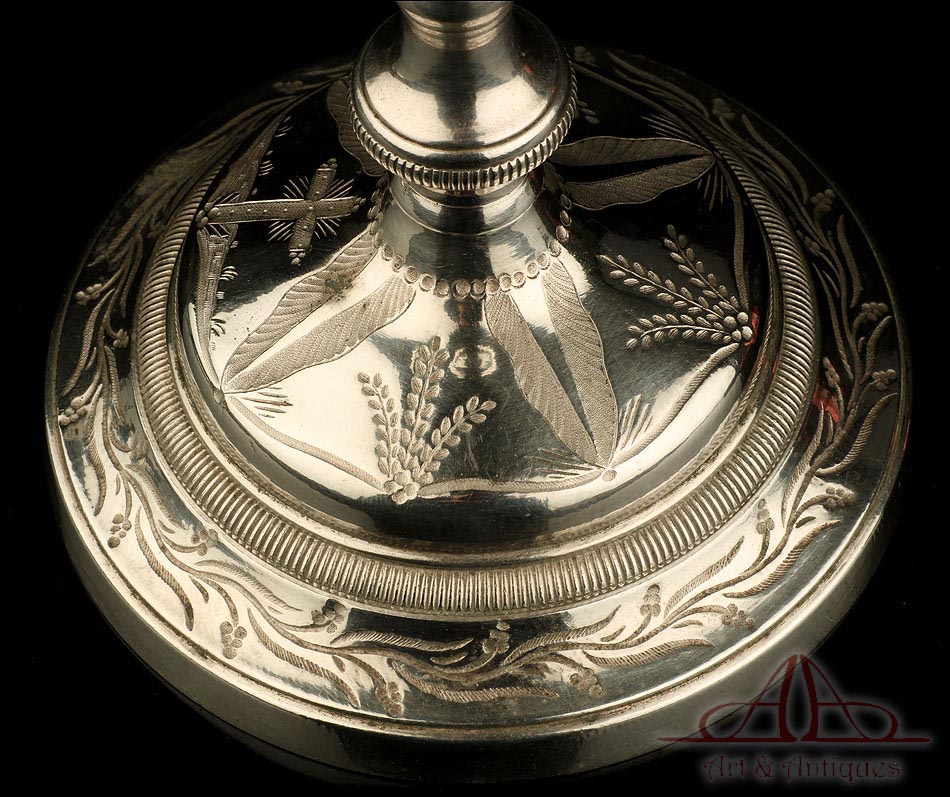 Antiguo Cáliz en Plata Maciza y Metal Plateado. Lyon, Francia 1819-1838 |
