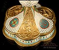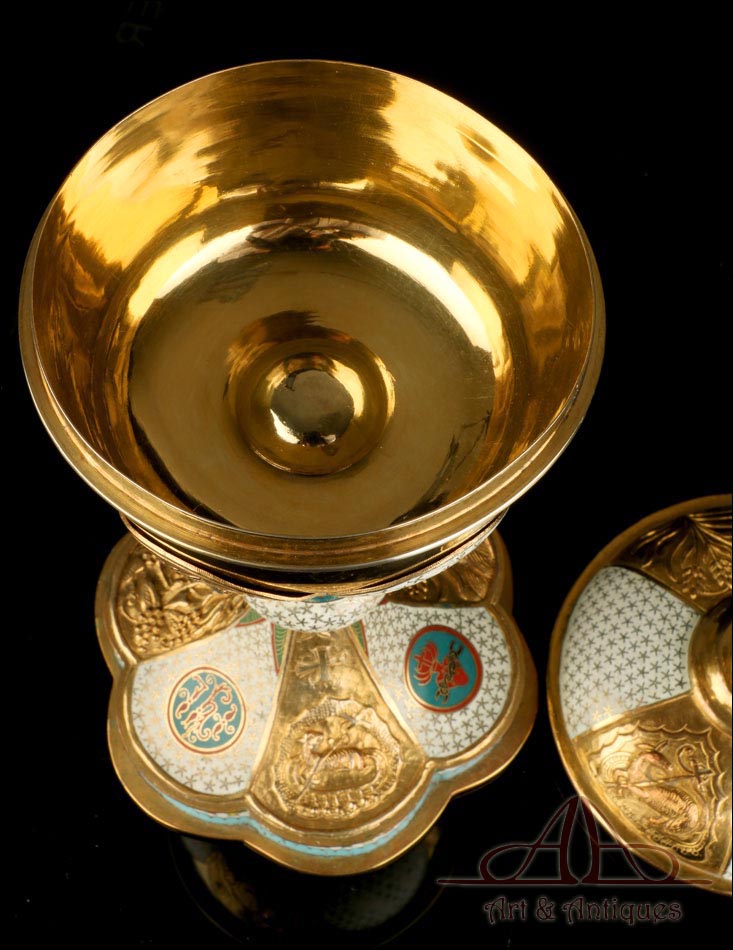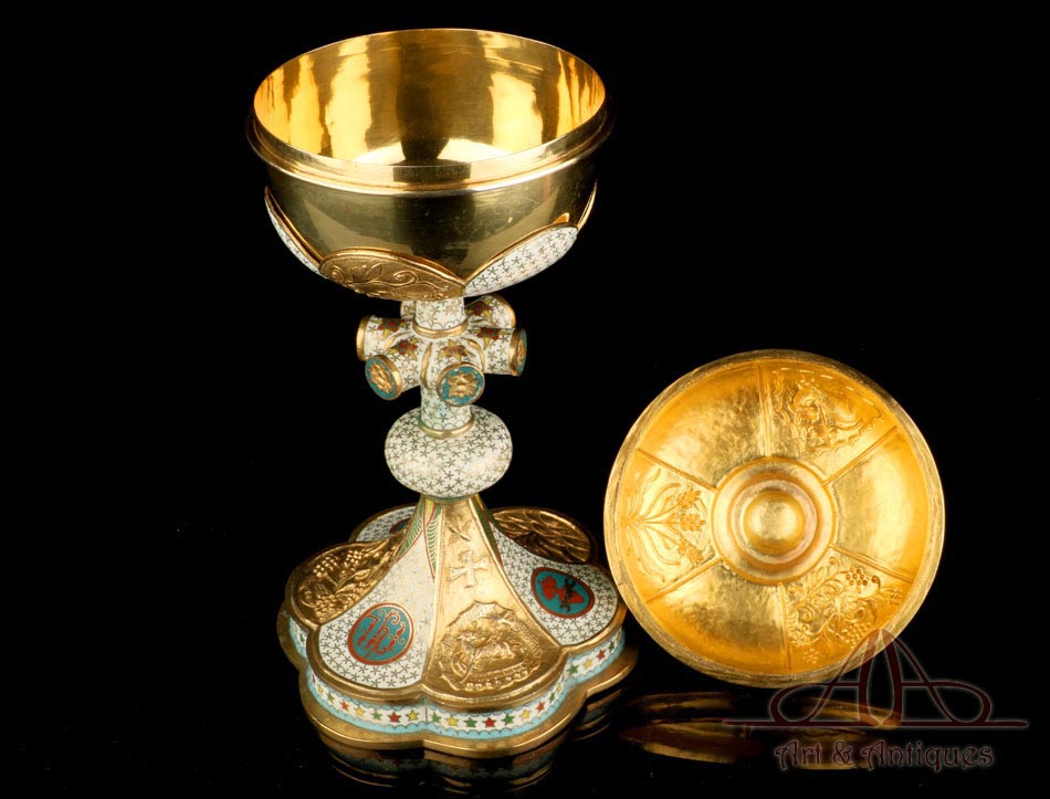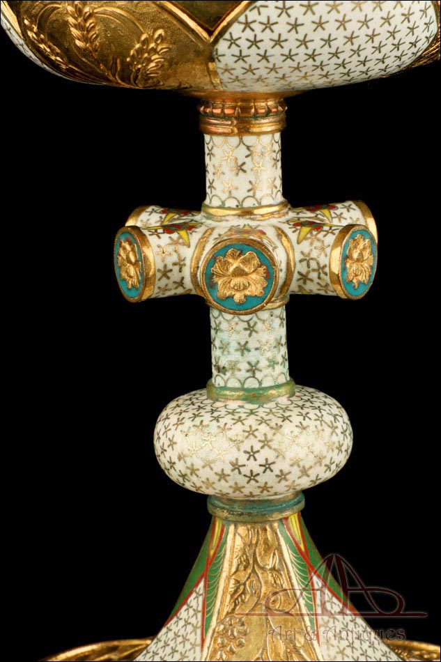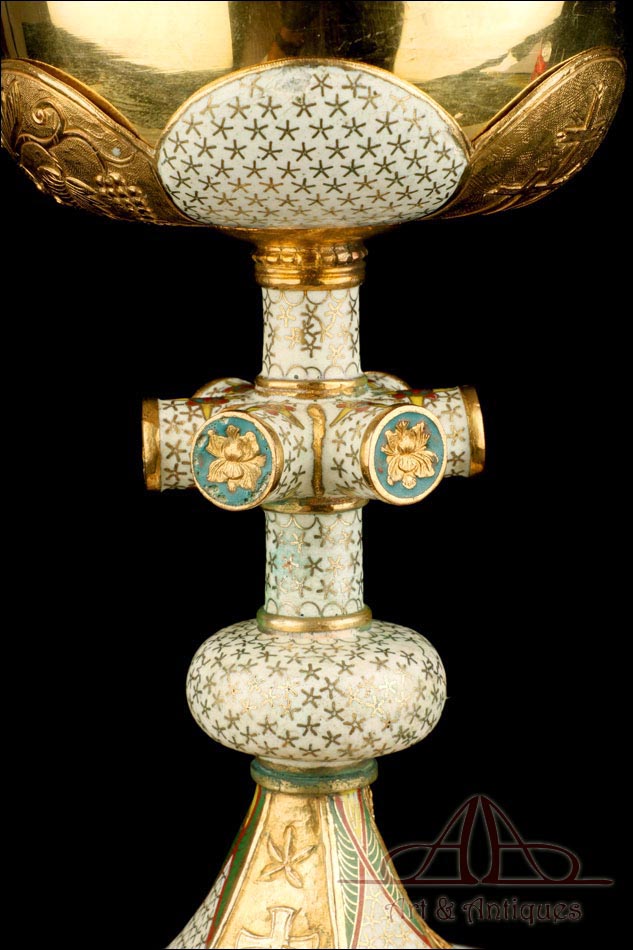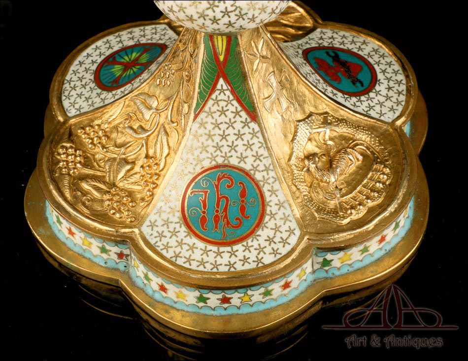 Los amantes de las piezas artísticas religiosas apreciarán sin duda la rareza y el magnífico estado de este extraordinario copón antiguo francés con esmaltes Champlevé.