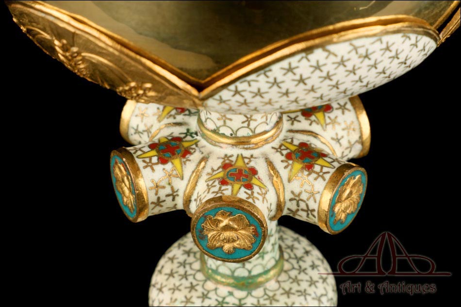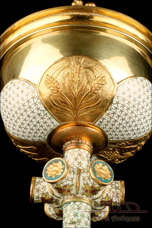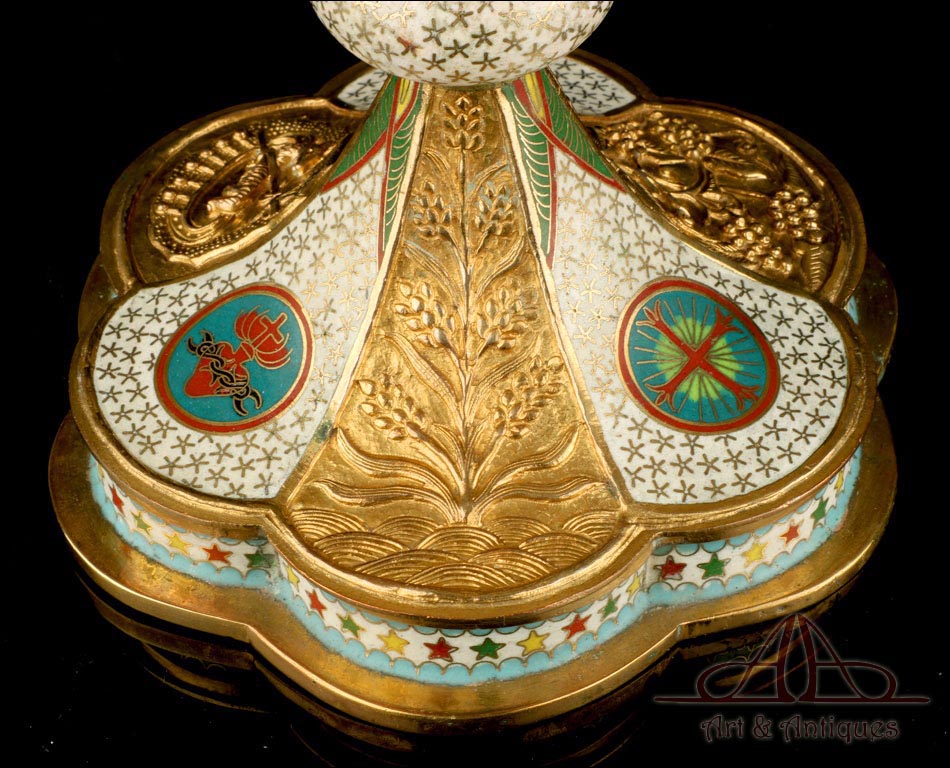 Extraordinario Copón Antiguo. Esmaltes Champlevé. Francia, circa 1920. |
