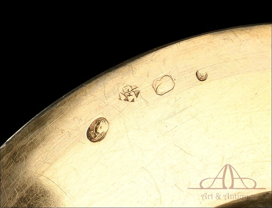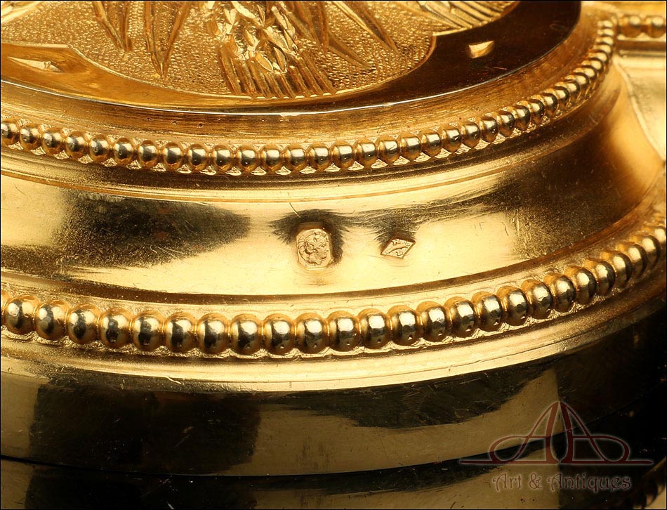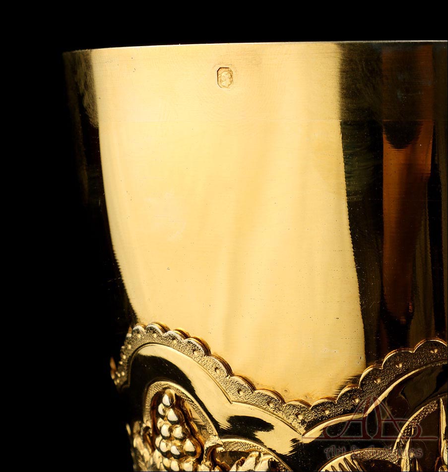 Antiguo Cáliz de Plata Maciza Dorada con Estuche. Francia, Circa 1900 |
