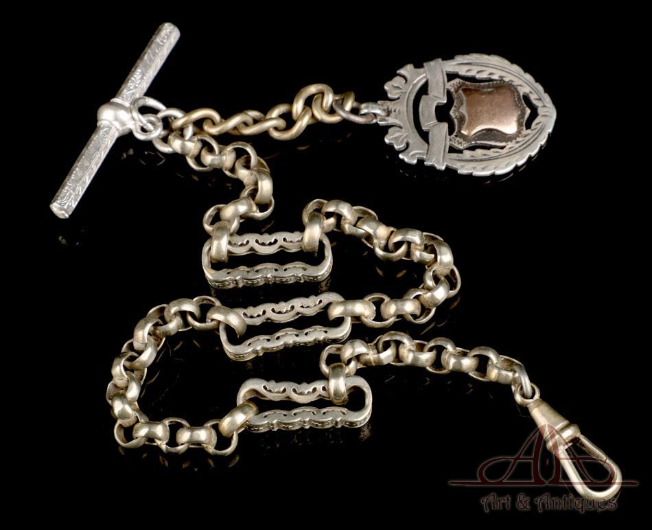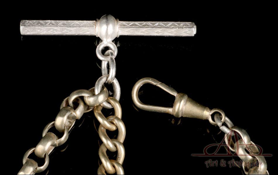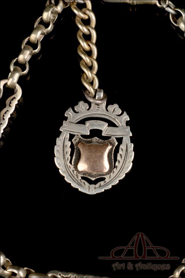 Antigua Cadena Para Reloj de Bolsillo de Plata Maciza. Birmingham, Inglaterra, 1909 |