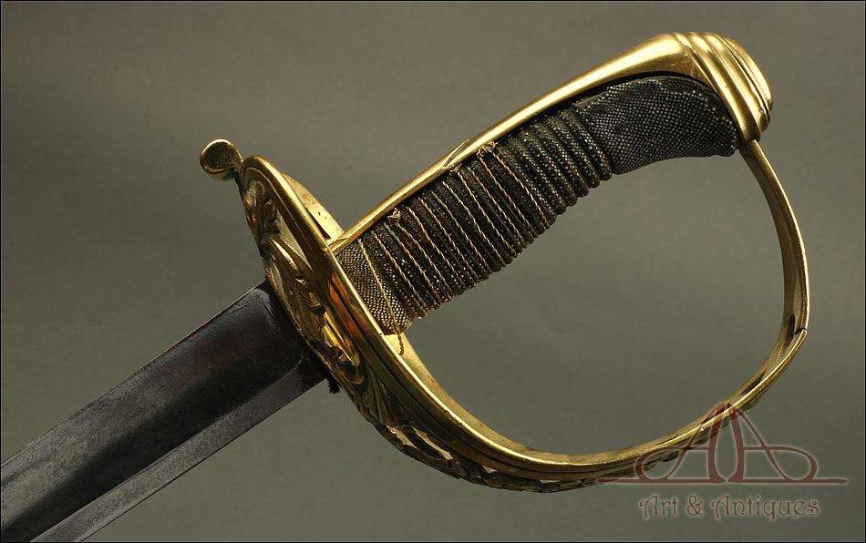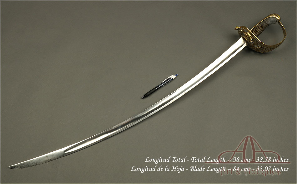 Este hermoso sabe de oficial de caballería ligera modelo 1840 será una gran incorporación para cualquier colección de espadas o armas que se precie.