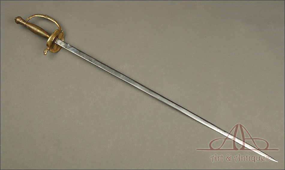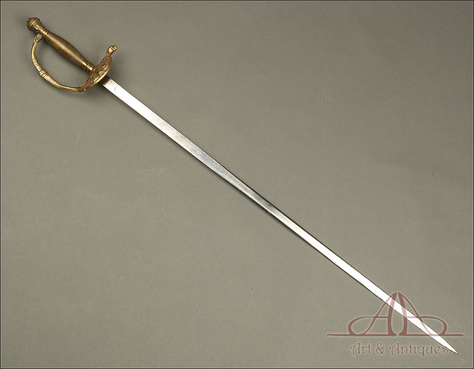 La preciosa montura y la estilizada hoja de esta antigua espada de gala para oficial de infantería modelo 1867 la convierten en una pieza con gran poder de atracción, digna de una colección ambiciosa.