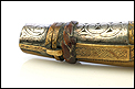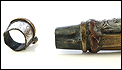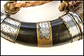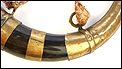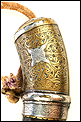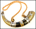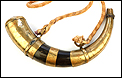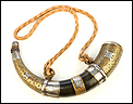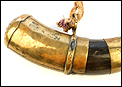 Este fascinante y antiguo cuerno de pólvora negra o polvorera es una auténtica pieza de coleccionista, de gran belleza y rica decoración.