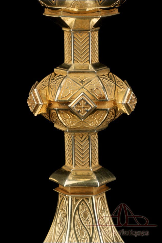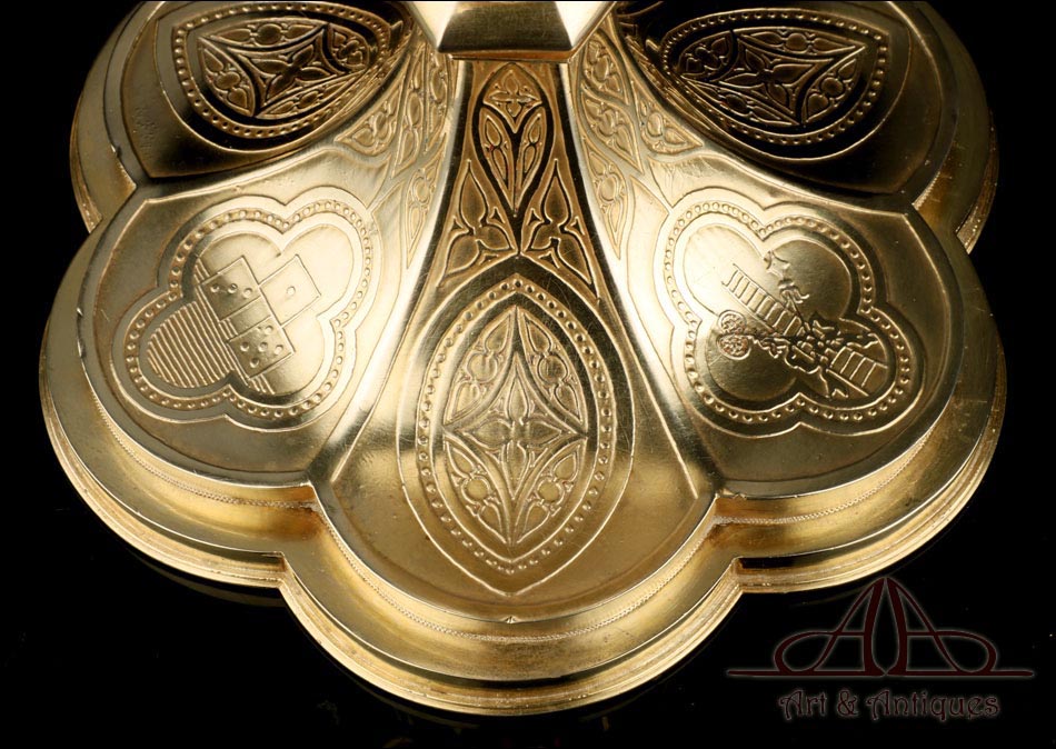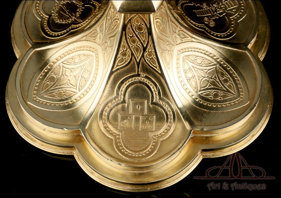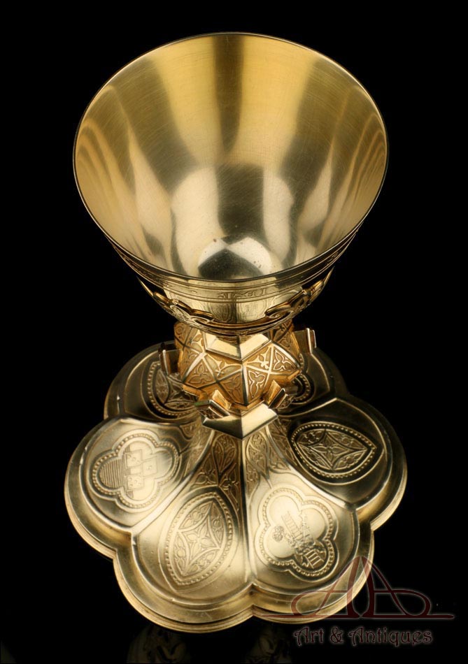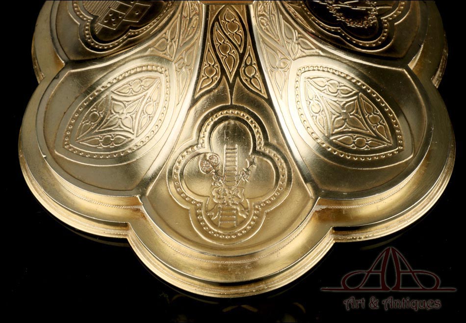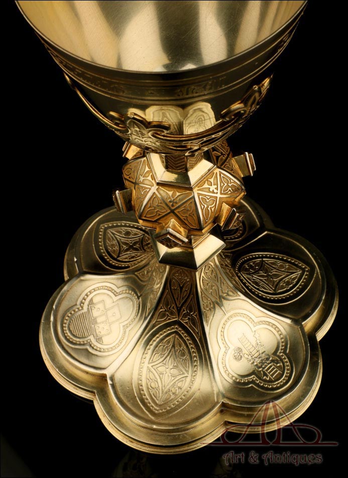 Antiguo Cáliz Neogótico en Plata Maciza Dorada. España, Pps S. XX |