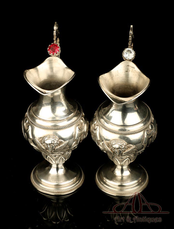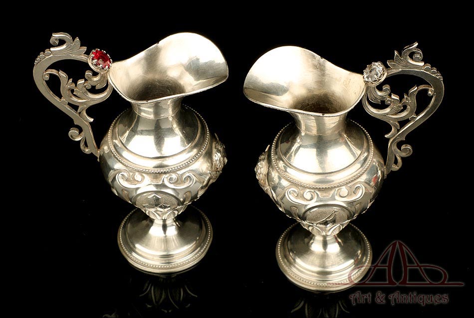 Antiguas Vinajeras Litúrgicas de Plata Maciza. Barcelona, España, Siglo XIX |