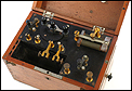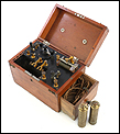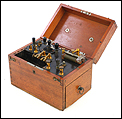 Fascinante y antiguo aparato médico de electroterapia fabricado circa 1900, bien conservado y con todos sus componentes originales. El aparato se presenta en una sólida caja de madera de caoba maciza, con uniones en cola de milano en las esquinas y un cajón lateral extraíble. La caja tiene tapa unida con bisagras y está muy bien conservada, con solo ligeros signos del paso del tiempo que le aportan un encanto indiscutible. Los herrajes, las bisagras y el asa son originales y están en buenas condiciones.