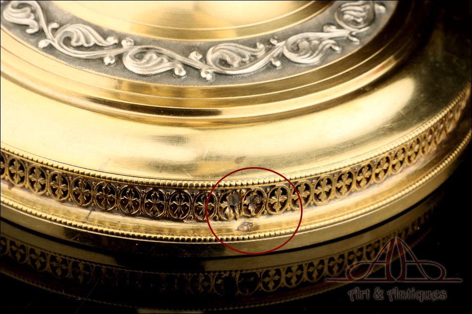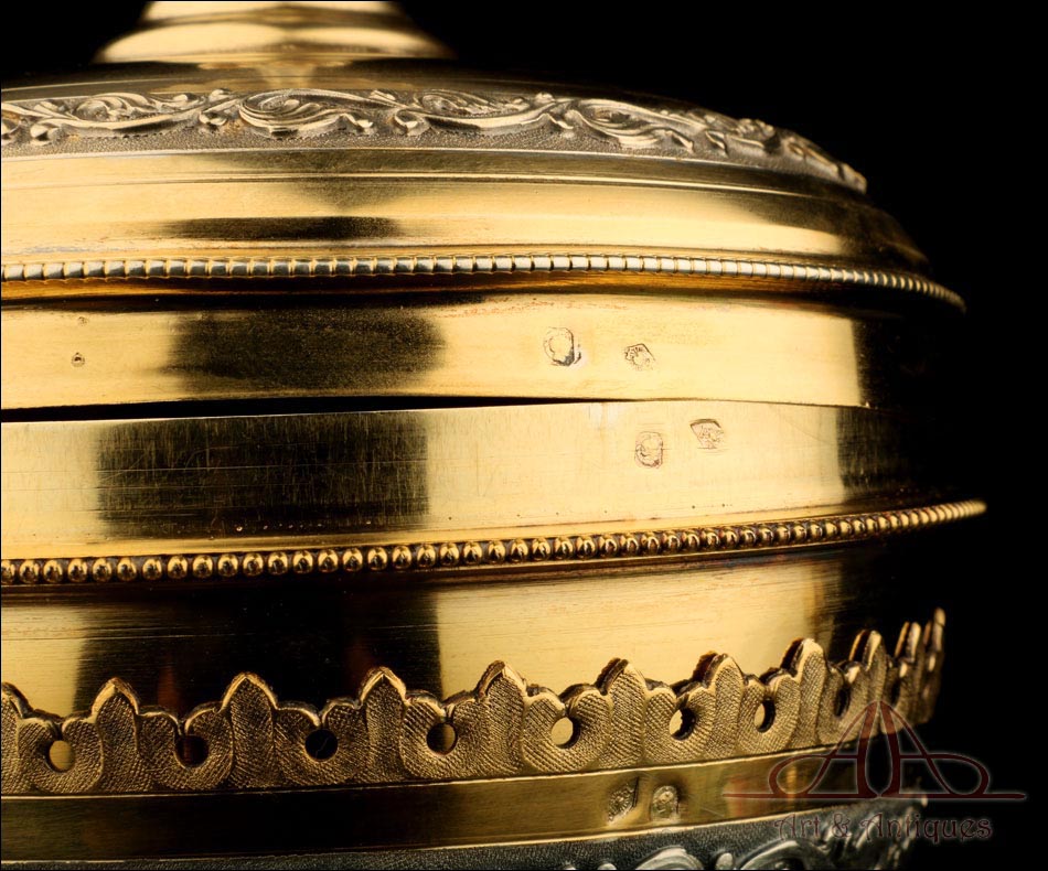 Copón Antiguo en Plata Dorada Maciza. Francia, S. XIX |