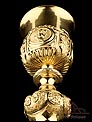 Los amantes de la artesanía religiosa y la plata antigua sabrán apreciar la belleza de este fantástico cáliz antiguo de plata maciza dorada, un artículo de espectacular diseño.
