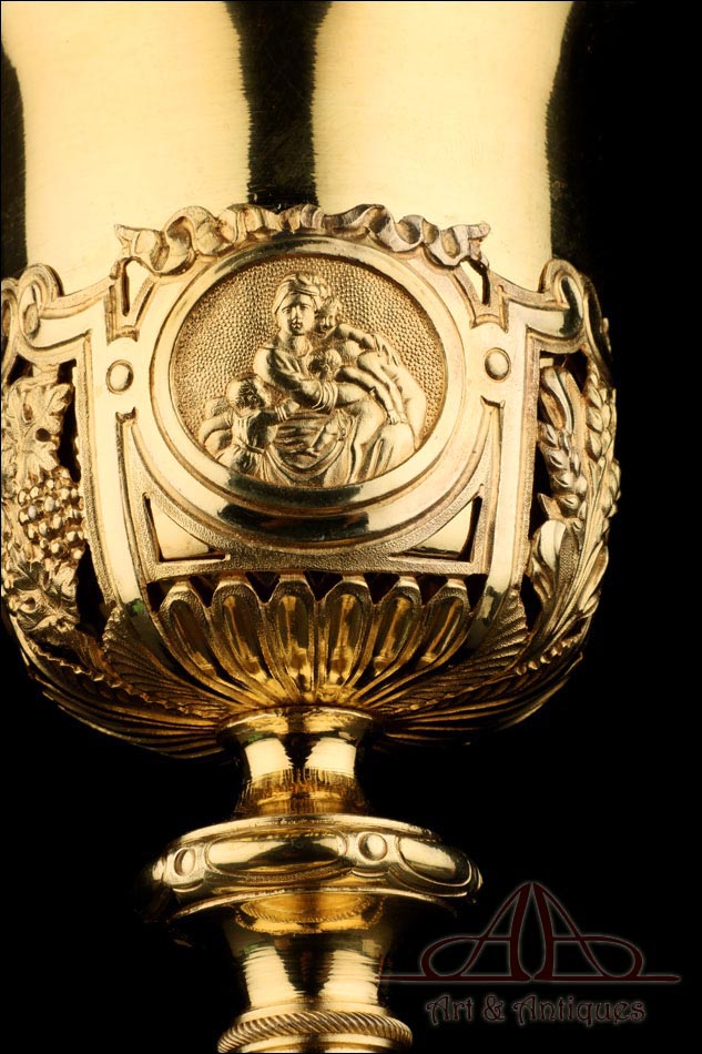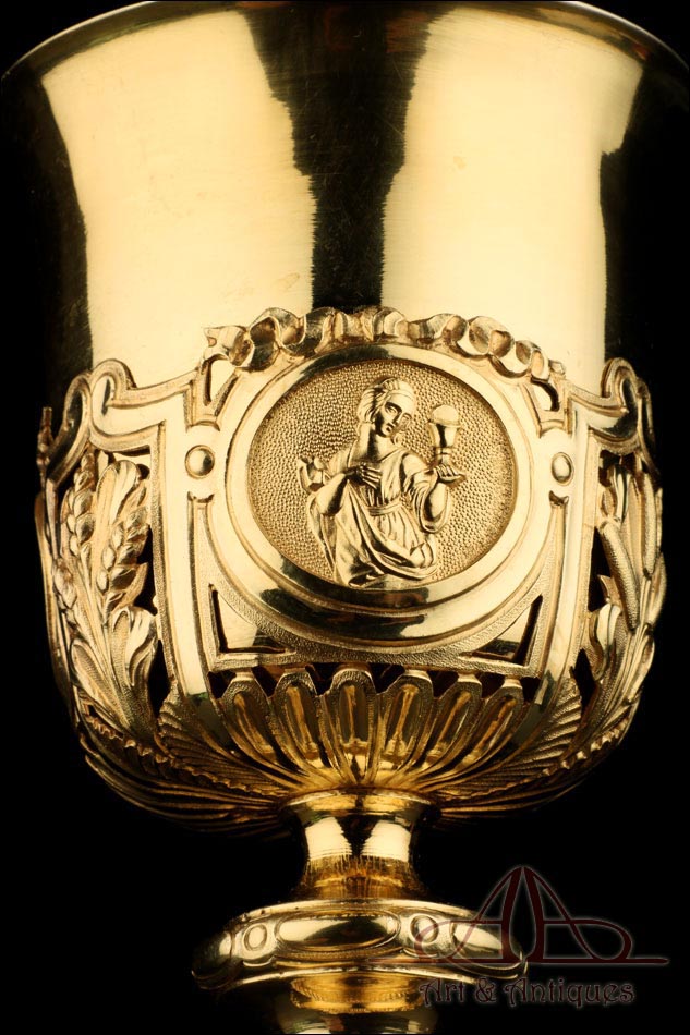 Fantástico Cáliz Antiguo en Plata Maciza Dorada. Francia, 1820 |