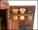 El microscopio lleva pie de herradura, espejo de doble cara y cremallera en perfecto estado de funcionamiento. Por su parte, el diafragma original situado bajo la pletina también se encuentra en excelentes condiciones. En la parte posterior del pie podemos ver el nombre del fabricante y el número de serie grabados en el metal: R J BECK LTD. – LONDON – 24125. Los tornillos de ajuste y enfoque y el resto de las piezas móviles se mueven con fluidez y suavidad, convirtiendo el uso del aparato en una actividad muy placentera.