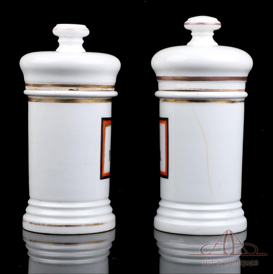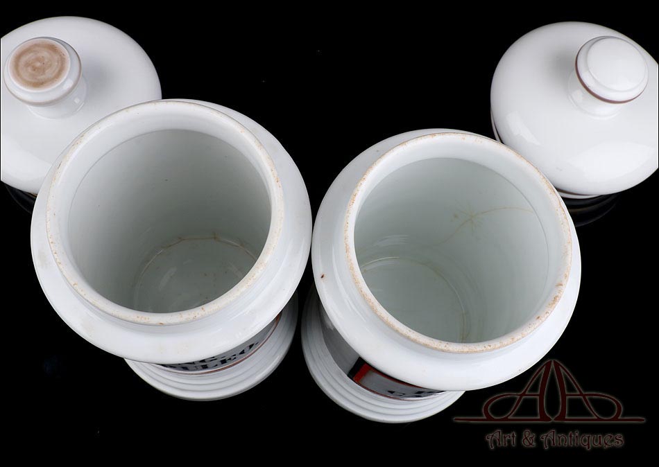 Pareja de Botes de Farmacia de Porcelana Antiguos. España, Circa 1900-1930 |