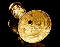 Estos fantásticos cáliz y patena antiguos de plata dorada son dignos de pertenecer al tesoro de una catedral o a un museo con una buena colección de arte sacro.