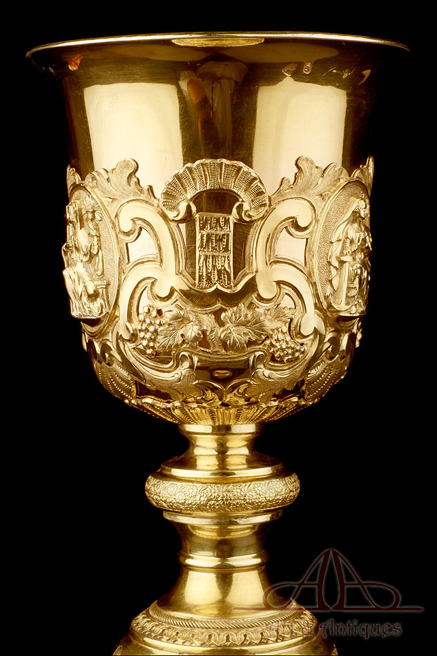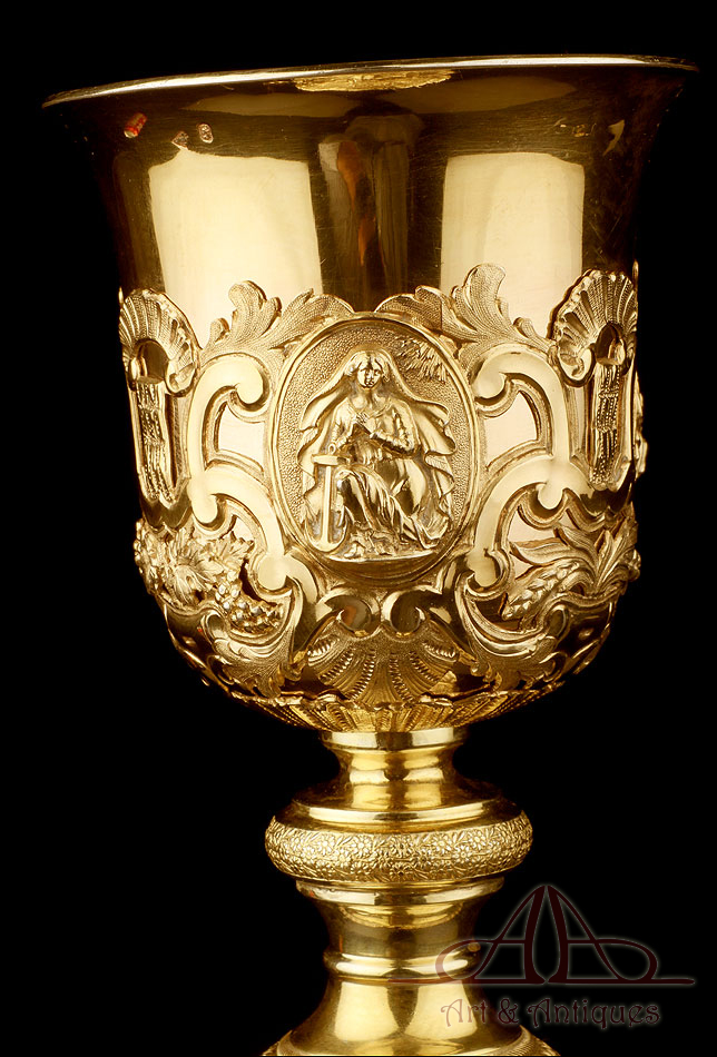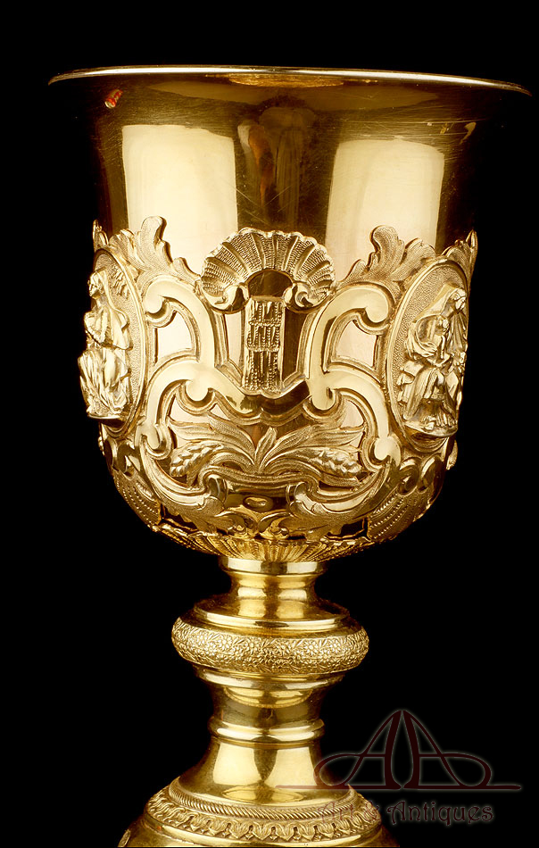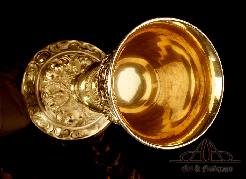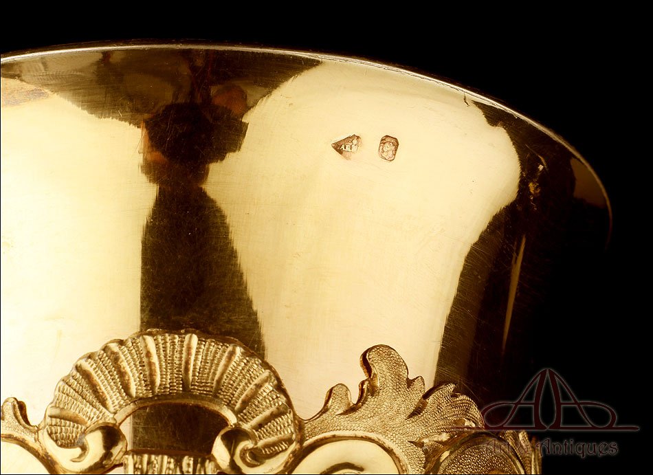 Fantástico Cáliz y Patena Antiguos de Plata Dorada. Francia, S. XIX |