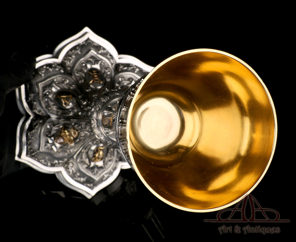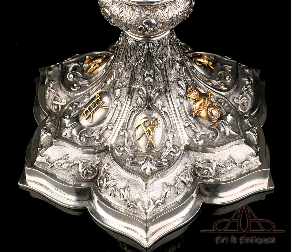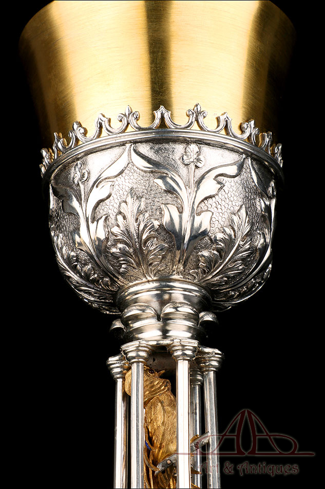 Extraordinario Cáliz Antiguo en Plata, Oro y Plata Dorada. Diamante. España, 1900 |