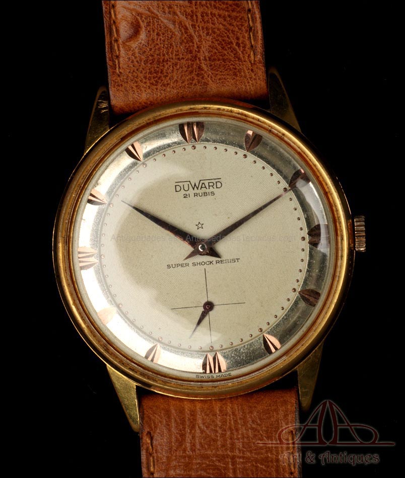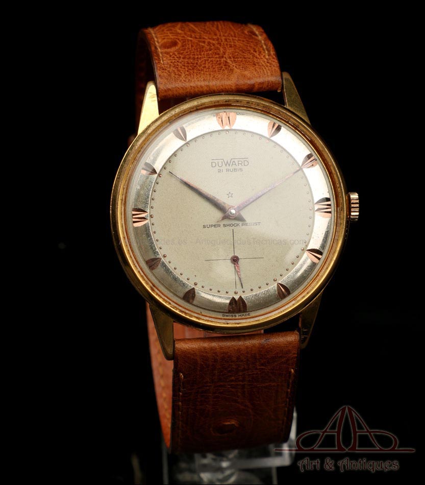 Reloj de Pulsera Duward de Caballero. 21 Rubís. Metal Dorado. España, Años 60 |